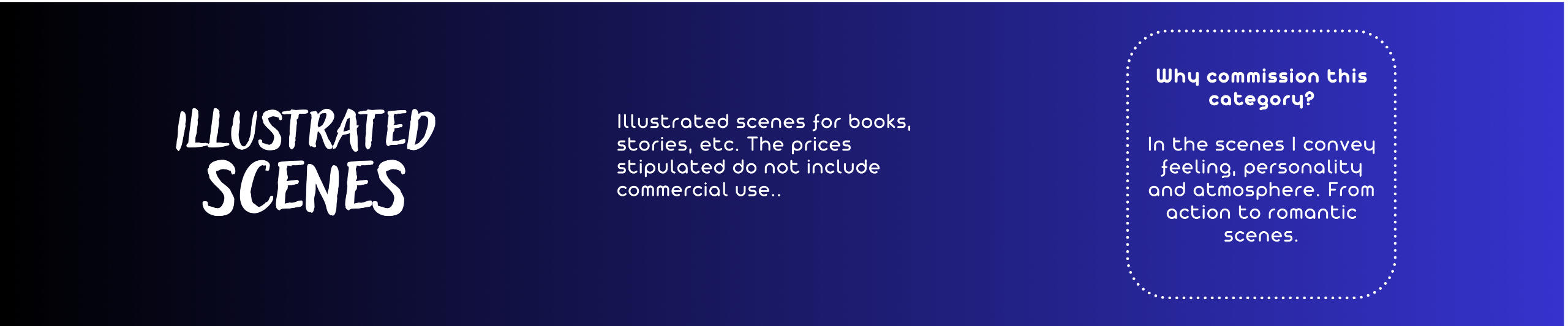 3. How is the commercial aspect handled and in which cases does it apply?The commercial percentage applies as long as the illustration or the commission project is for physical or digital publications or for commercial purposes for diverse supports.4. I have something in mind but I don't see that you work that in particular or I don't see what category it could fit in. What can I do?Write me at [email protected]. I accept illustration projects and even illustrations for merch or prints. Explain me what do you want and I'll be glad to help you.