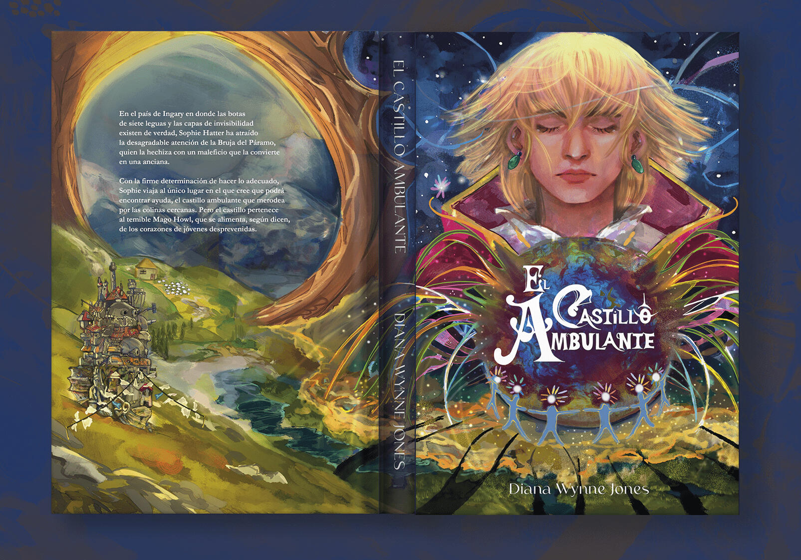 Cubierta ilustrada para El Castillo Ambulante en su versión en inglés. Proyecto personal. Sin contrato de publicación hasta ahora.